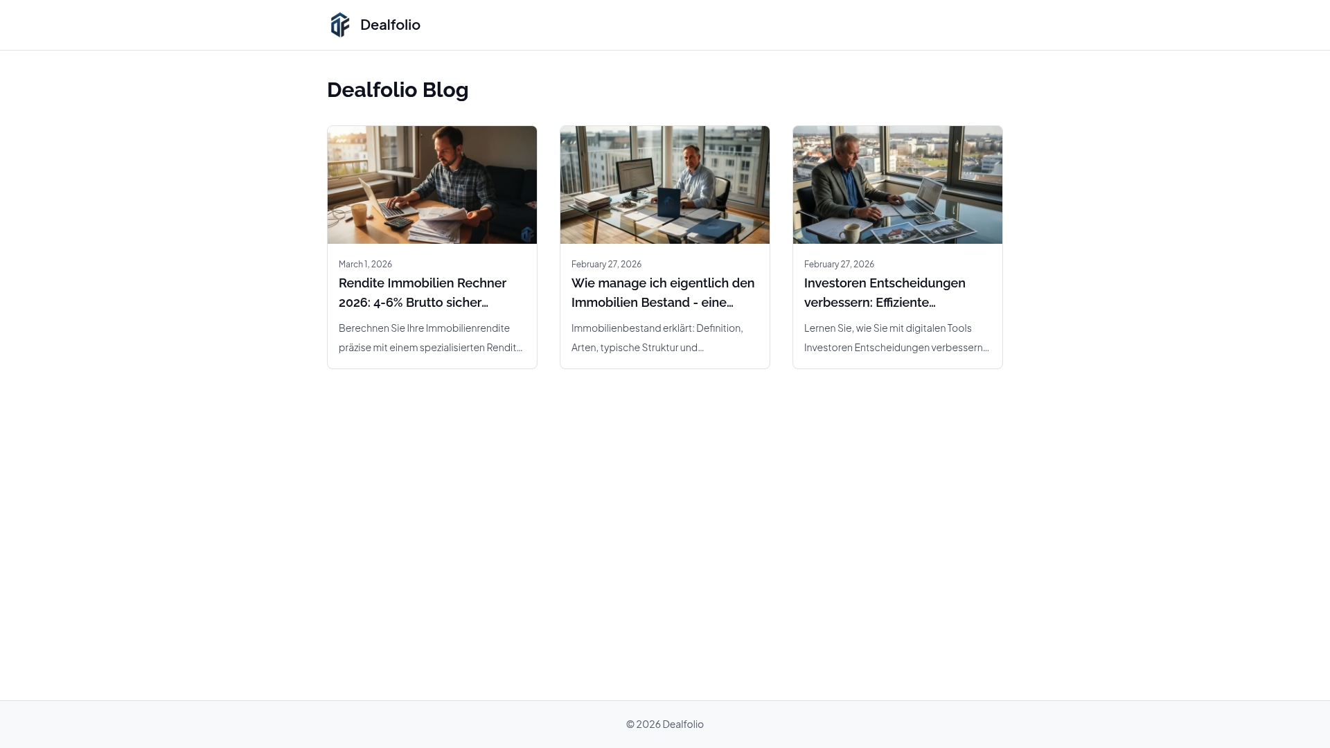 Starten Sie jetzt durch und steigern Sie Ihre Effizienz mit einer deutschen SaaS-Plattform, die speziell für private Immobilieninvestoren entwickelt wurde. Besuchen Sie Dealfolios Blog für praxisnahe Tipps und erfahren Sie wie Sie Ihr Portfolio besser kontrollieren, Risiken minimieren und fundierte Entscheidungen treffen können. Verlassen Sie das Excel-Chaos und erleben Sie wie professionelle Struktur Ihren Erfolg beflügelt.