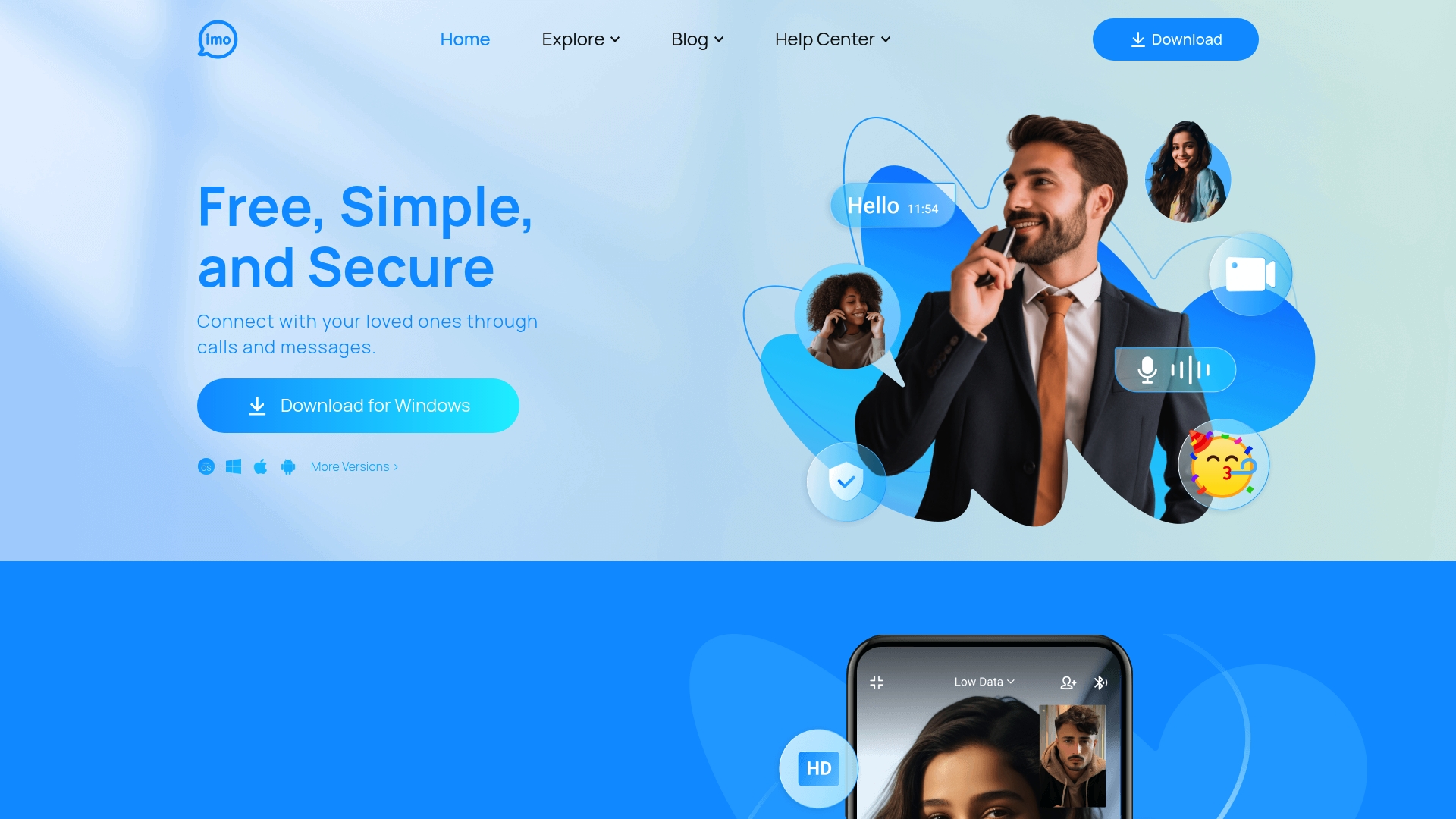Die Kontosicherheit umfasst 2‑Schritt‑Verifikation und Spam‑Blockierung, und Imo läuft auf Windows, Mac, iOS und Android für nahtlose Gerätewechsel.