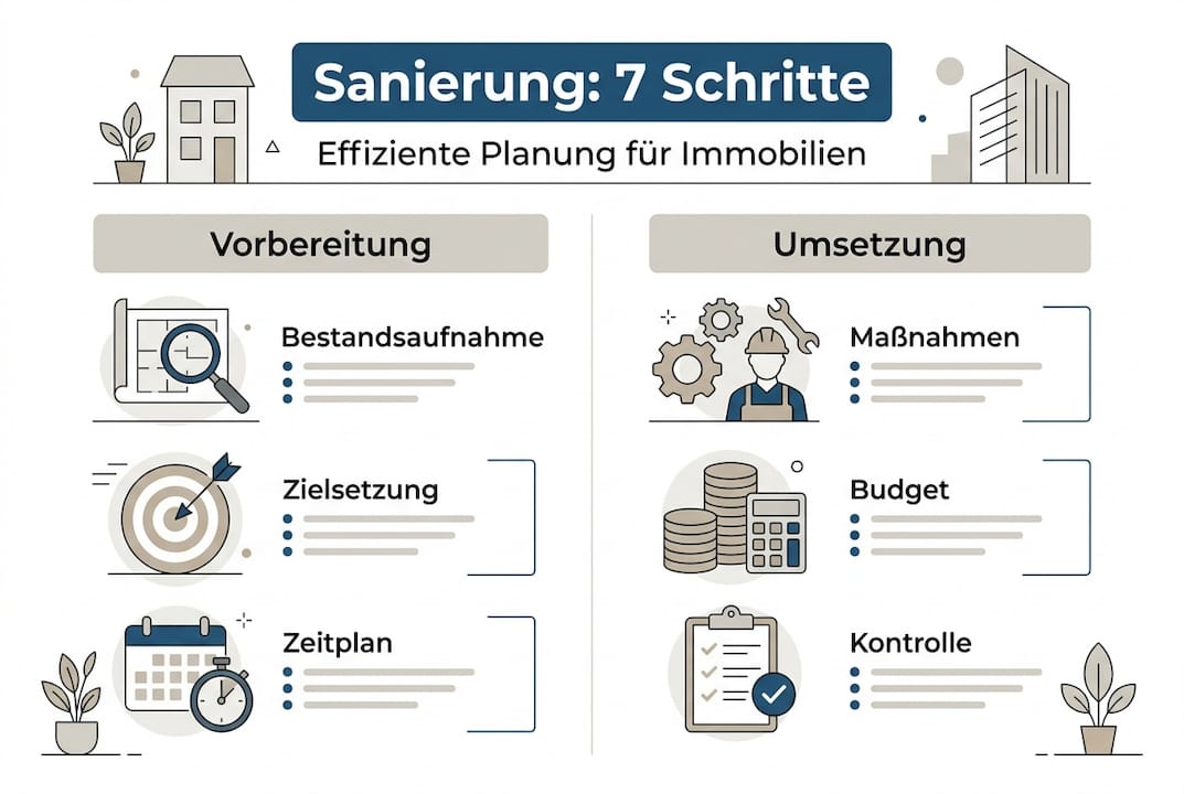 Viele private Investoren glauben, eine Sanierung sei nur kostenintensiv und kompliziert. Tatsächlich lassen sich mit systematischem Vorgehen und priorisierter Planung sowohl Kostenfallen vermeiden als auch nachhaltige Wertsteigerungen von 30 bis 70 Prozent erzielen. Der Schlüssel liegt in der richtigen Reihenfolge der Maßnahmen und der Kenntnis rechtlicher Vorgaben. Dieser Artikel zeigt Ihnen, wie Sie Ihr Sanierungsprojekt von der Bestandsaufnahme bis zur Umsetzung strukturiert angehen, Förderungen optimal nutzen und typische Fehler vermeiden.