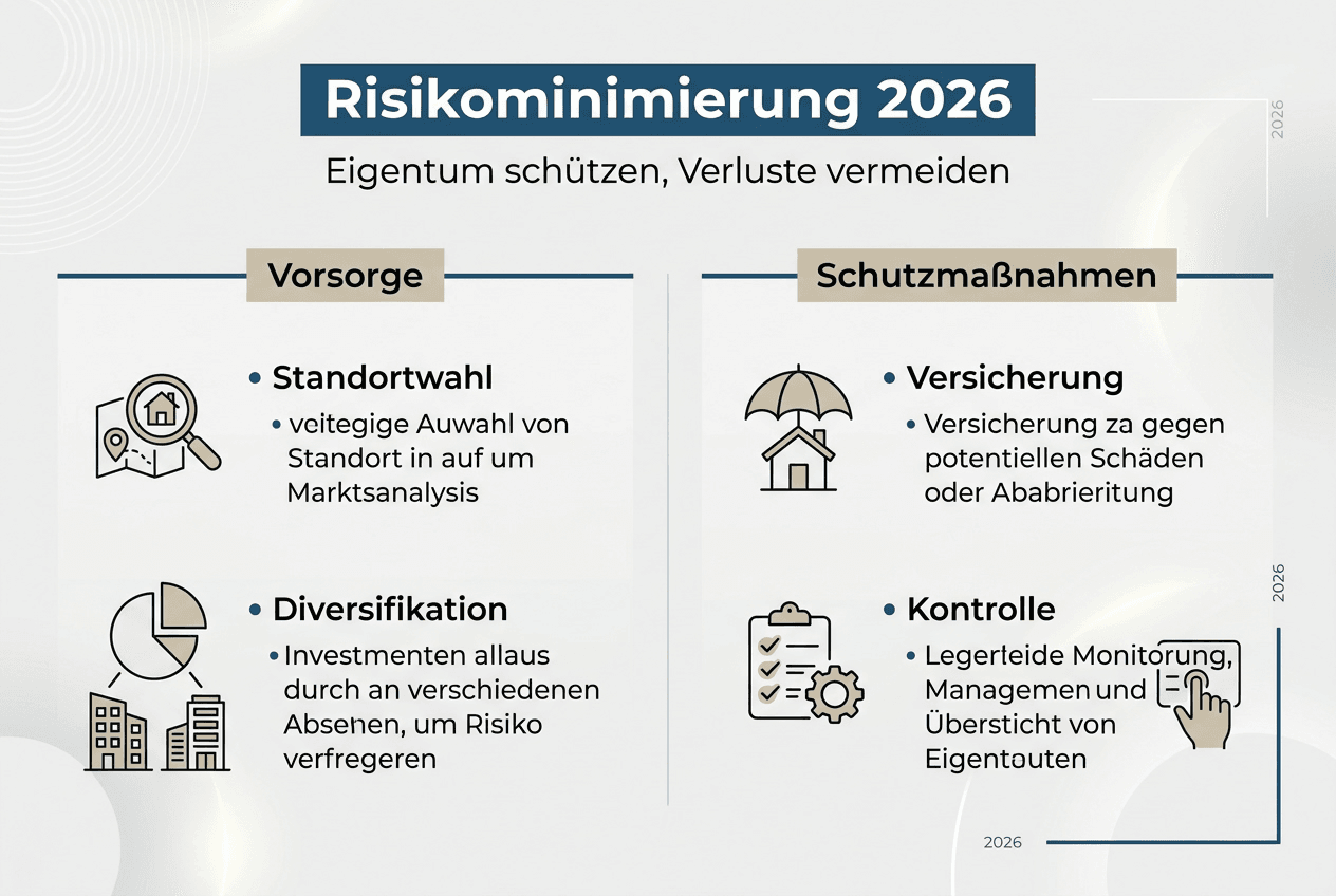Besonders wichtig ist die Verknüpfung von Risikomanagement und steuerlicher Optimierung. Viele Absicherungsmaßnahmen lassen sich steuerlich geltend machen und verbessern so Ihre Gesamtrendite. Mehr dazu erfahren Sie in unserem Guide zu Immobilien Steuern sparen 2026.