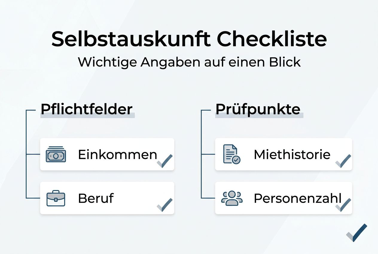 Eine Checkliste für notwendige Angaben und typische Plausibilitätsprüfungen erleichtert die Auswertung erheblich. Prüfen Sie, ob das angegebene Einkommen realistisch zur Position passt, ob die Miethistorie lückenlos ist und ob die Anzahl der einziehenden Personen zur Wohnungsgröße passt. Unstimmigkeiten wie fehlende Arbeitgeberkontakte oder ungewöhnlich häufige Umzüge sollten Sie kritisch hinterfragen.